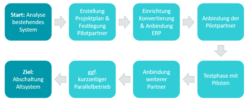 Beispielhaftes Diagramm zur schrittweisen Umstellung auf die EDI-Cloud