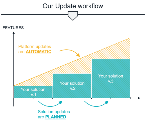 By mixing these two types of updates, you benefit from a secured environment at any time, and from globally available features, while ensuring no disruption in your daily use of the solution as well as a consistent business workflow.