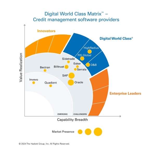 Die Untersuchung der Hackett Group® konzentrierte sich auf die Prozesse des Kreditmanagements, der Auftragsverarbeitung sowie des Rechnungsversands an Kunden (EIPP) – wobei jedem Lösungsanbieter basierend auf deren Leistung in jeder Kategorie eine unterschiedliche Leistungsbewertung zugewiesen wurde.