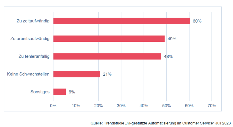Welche Schwachstellen bestehen aus Ihrer Sicht beim aktuellen Prozess, Aufträge/Bestellungen im Customer Service zu bearbeiten? (Mehrfachauswahl möglich)
