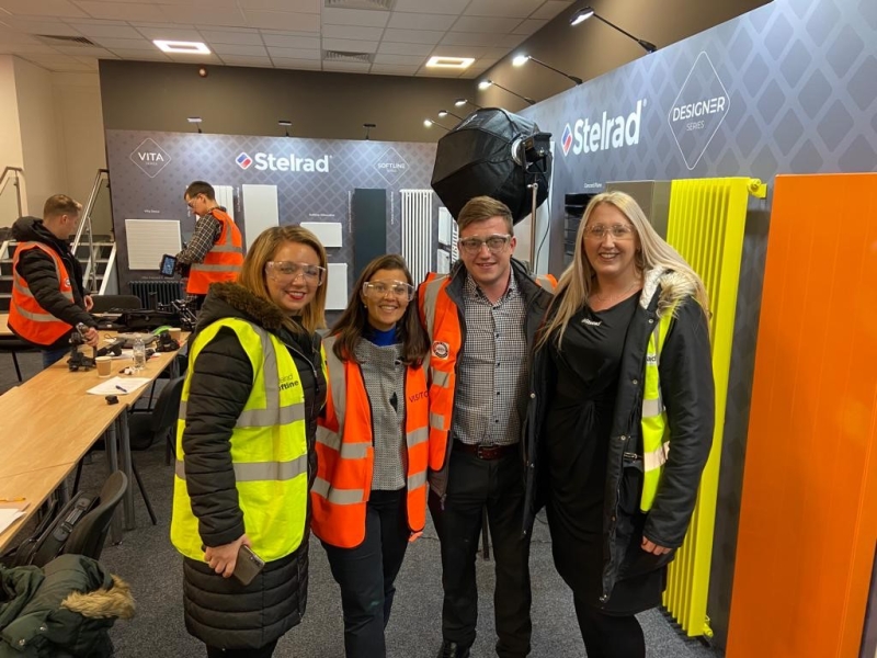 Following the interviews, we donned our high-vis gear, protective eyewear and ear plugs and followed the camera team around the Stelrad factory. It was fascinating to see sheet metal being bashed, heated, steamed and painted to end up as a radiator! (Obviously there is a lot more to the process!)