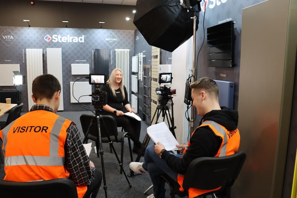Following the interviews, we donned our high-vis gear, protective eyewear and ear plugs and followed the camera team around the Stelrad factory. It was fascinating to see sheet metal being bashed, heated, steamed and painted to end up as a radiator! (Obviously there is a lot more to the process!)