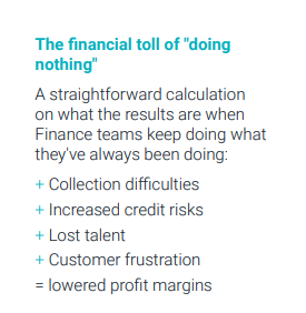 The consequences of maintaining the status quo are stark. When Finance teams cling to traditional practices, a sequence of adverse outcomes unfolds: difficulties in collections, heightened credit risks, talent attrition, and mounting customer frustration. Collectively, these factors lead to dwindling profit margins. To flourish amidst these challenges, proactive measures, strategic shifts, and an embrace of change are essential.
