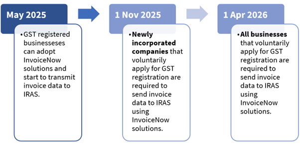 To aid businesses in the transition to electronic invoicing, IRAS has outlined a phased approach for compliance: