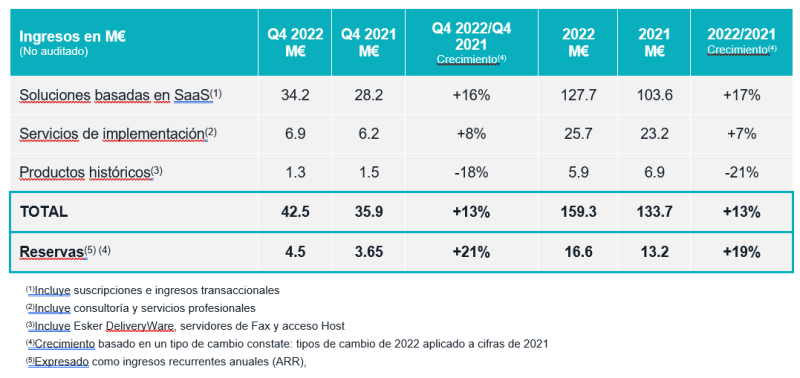 Madrid — 24 de enero de 2023 —  Esker, empresa líder en la digitalización de la relación comercial entre proveedores y clientes, anuncia sus resultados del cuarto trimestre de 2022, que una vez más ha resultado el más exitoso de su historia y le ha permitido terminar el año con unos ingresos récord de 159,3 millones de euros, lo que supone un crecimiento del 19% sobre 2021.