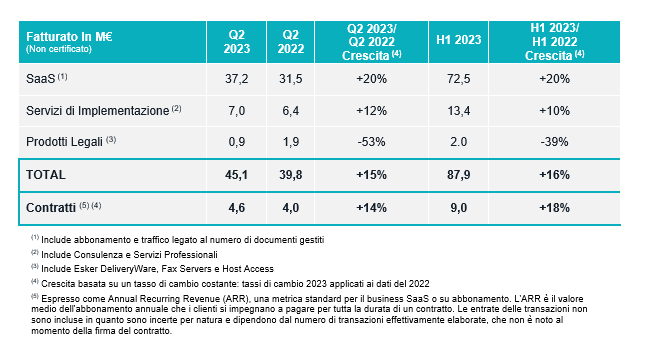 Il fatturato del secondo trimestre del 2023 di Esker è stato di 45,1 milioni di euro, con un aumento del 15% rispetto al Q2 2022 a tassi di cambio costanti (+13% a tassi correnti). Il fatturato del semestre è cresciuto del 16% a tassi di cambio costanti (+15% a tassi correnti), raggiungendo gli 87,9 milioni di euro. Ancora una volta Esker ha vissuto il suo miglior trimestre e semestre di sempre.